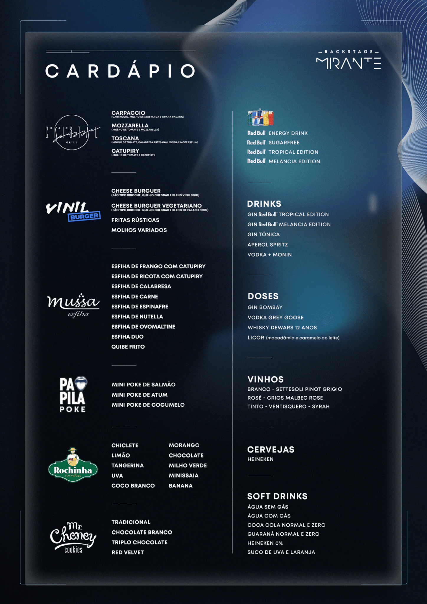 O cardápio do Backstage Mirante para o show Luis Miguel no Allianz Parque em São Paulo está recheado de variações para todos os gostos, confira as opções para este show: