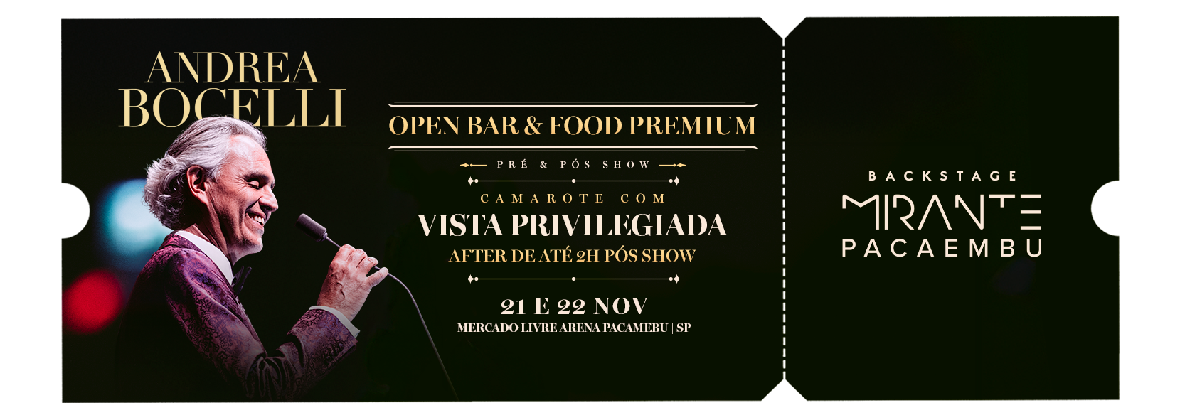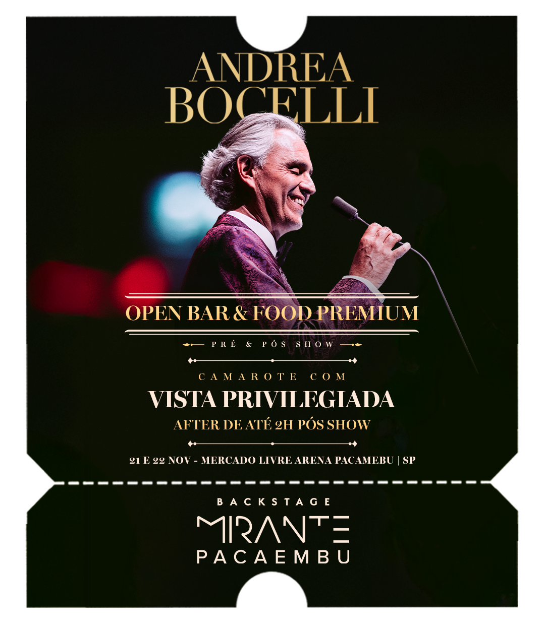 Em uma celebração que marca três décadas de uma das vozes mais icônicas da história, Andrea Bocelli retorna ao Brasil para uma noite monumental. Prepare-se para uma experiência imersiva e cinematográfica, um espetáculo que une a grandiosidade da ópera à intimidade de uma performance que toca a alma. Reviva a nostalgia e a emoção de clássicos atemporais como “Con te partirò”, “The Prayer” e “Vivo per lei”, em uma noite que honra seu legado e sua profunda conexão com o público brasileiro.