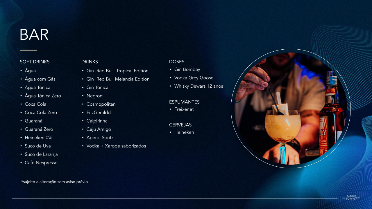 Open Bar Premium: Desfrute de drinks sofisticados e uma seleção de bebidas de alta qualidade.