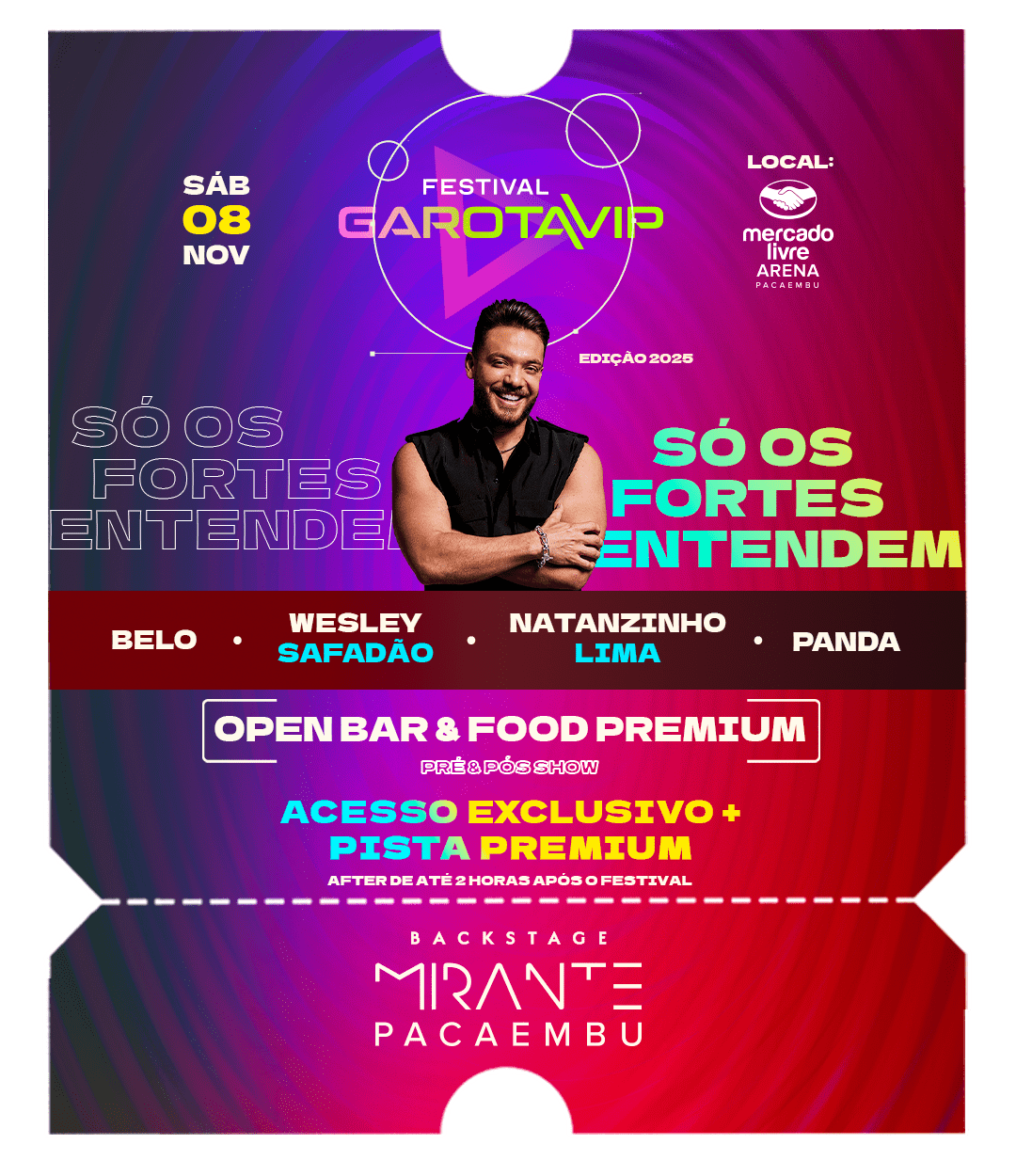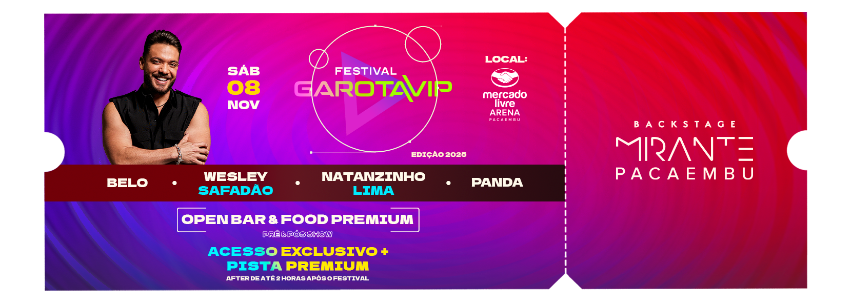 Acesso à Pista Premium: Livre transição entre o camarote e a Pista Premium.