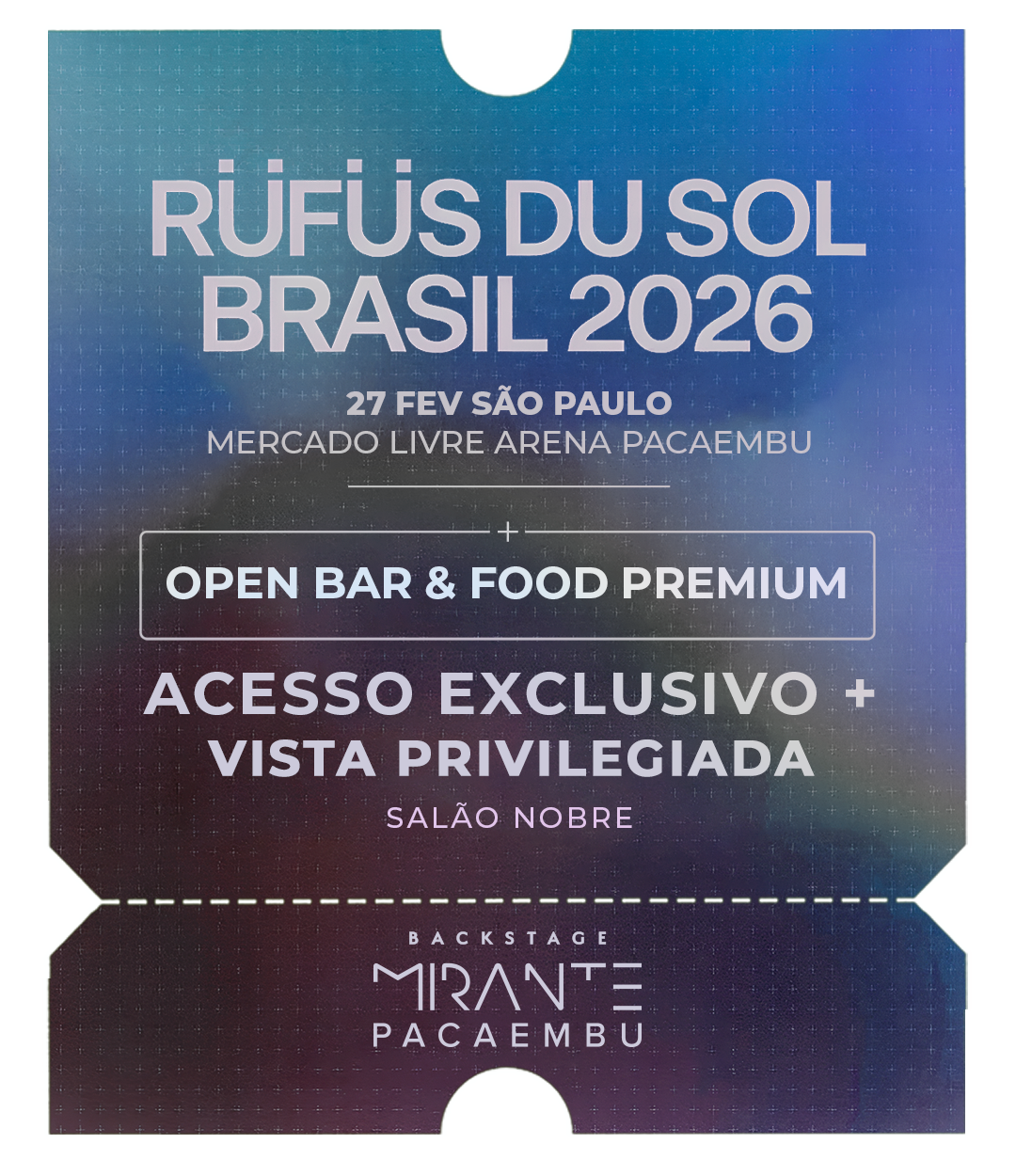 Este é um convite para atravessar o espetáculo com serenidade e presença. No palco, o RÜFÜS DU SOL entrega o impacto. Nos bastidores, você descobre o espírito da noite: atmosfera privativa, ritmo fluido e cada detalhe orquestrado para elevar o encontro entre música e cidade.